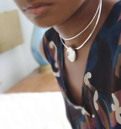 Although we are just tiny specs, each of us makes up a fragment of the universe. Into The Void explores that duality of being singular yet connected, minute yet expansive. Each piece features a petite turquoise set upon a much larger silver field. Despite its diminutive size, even in its singularity, it is both a substantial and significant component to the jewelry. In our own being, we are both small and infinite in our ephemeral bodies and our eternal souls. We are each a part of the universe, and the whole of the universe as well.